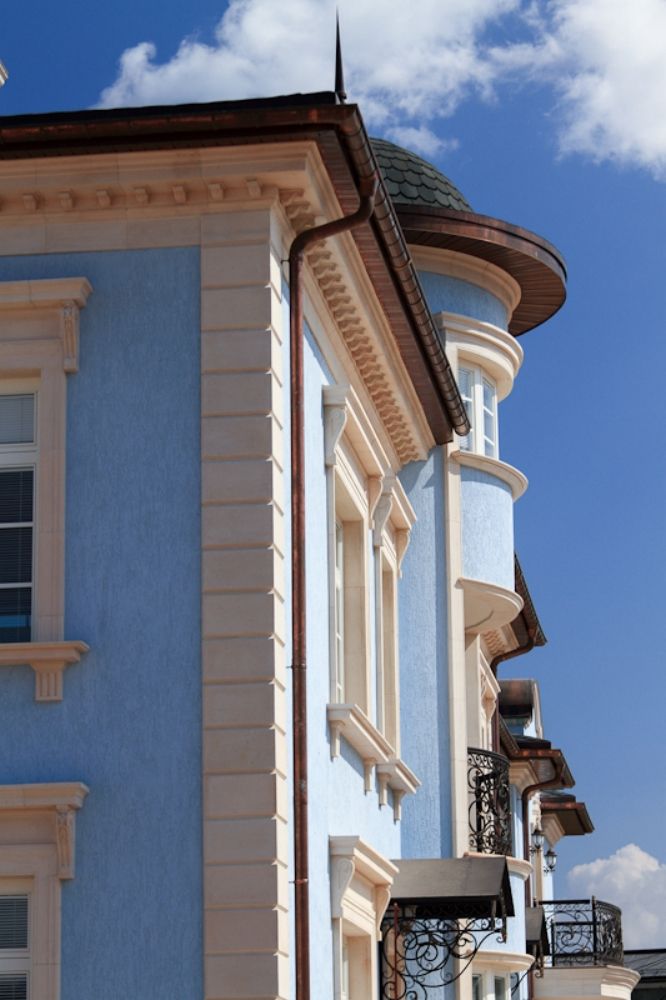 Раньше рустовые камни для фасада здания несли практический смысл – защита углов, изоляция от излишнего шума. В нашем веке здания строятся из таких прочных материалов, что дополнительной защиты углам не нужно. Поэтому теперь руст – это только декор, но привлекательный и модный, а также недорогой и простой в монтаже. Экономичности и легкости удалось достичь за счет современных материалов.